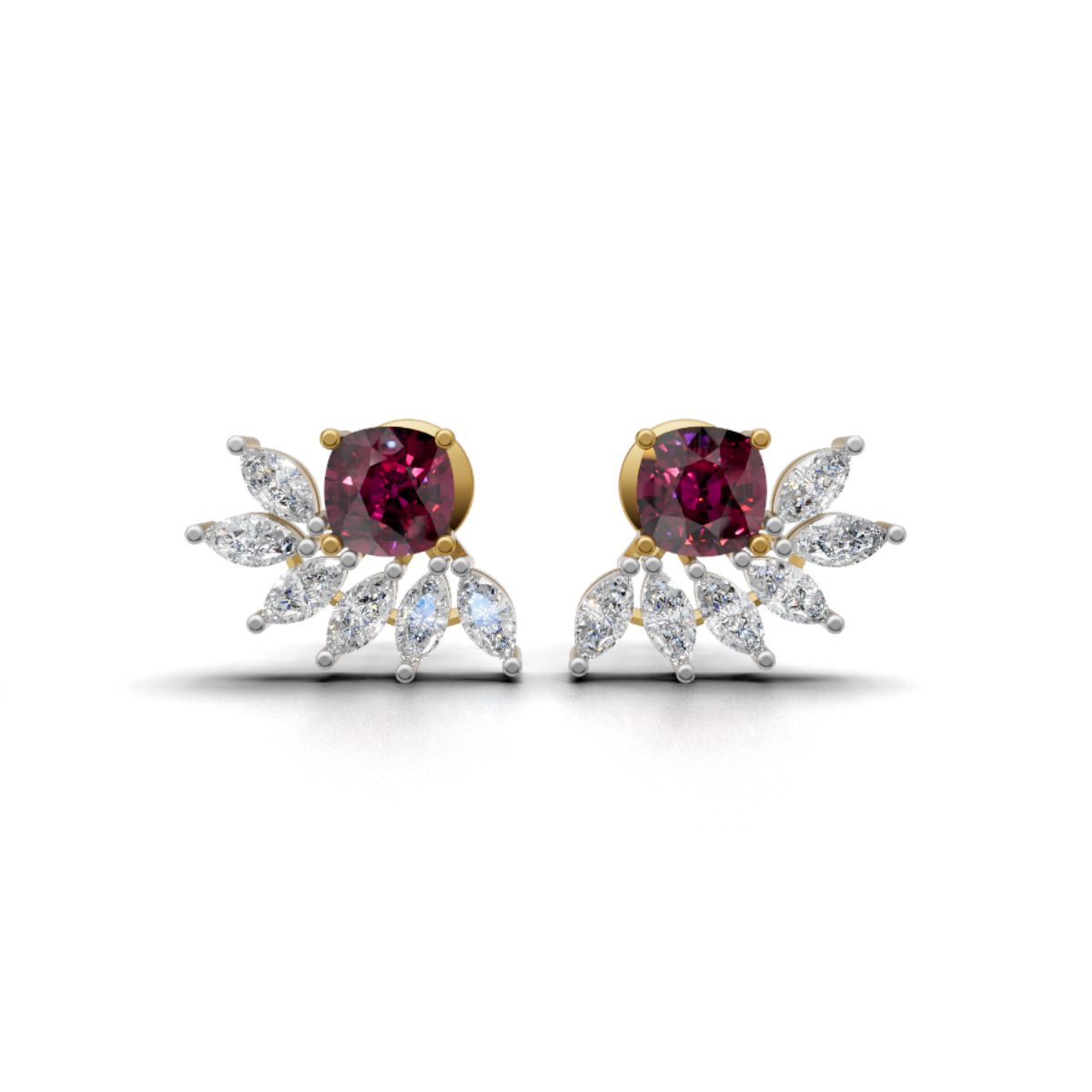 Avarta Gold Luxe Cushion Ruby Lab Diamond Earrings
