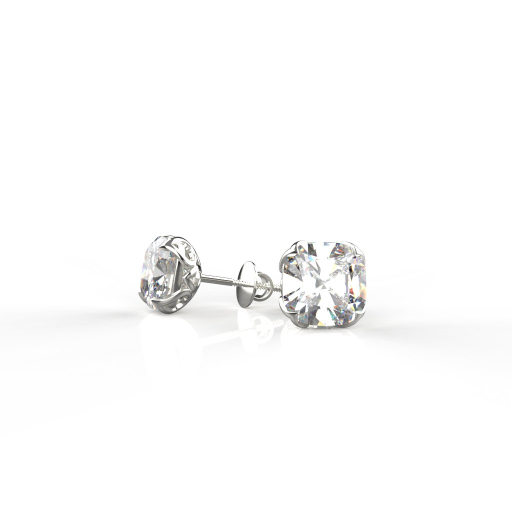 Avarta Jewellery 18k White Gold 2.50 Carat each Cushion Moissanite Solitaire Studs