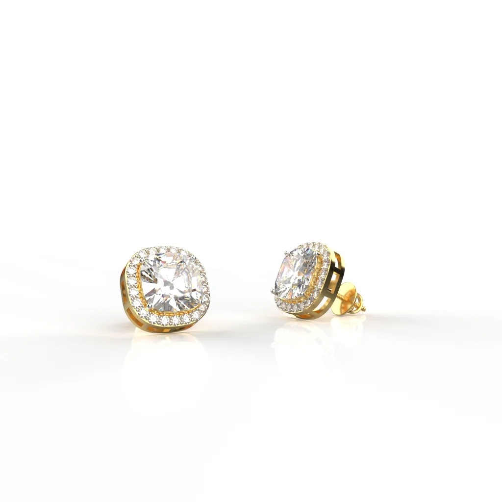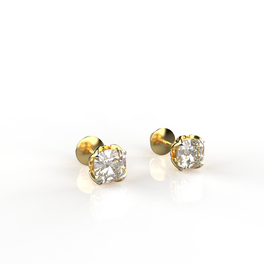 Avarta Jewellery 18k Gold 75 Cents each Cushion Moissanite Solitaire Studs