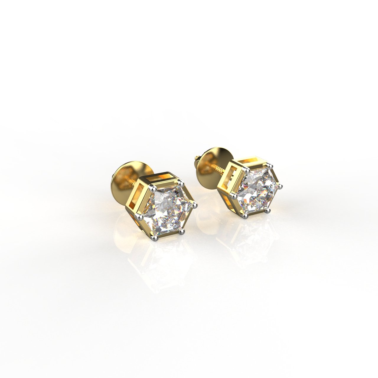 Avarta Jewellery 18k Gold 80 Cents each Hexagonal Moissanite Solitaire Studs