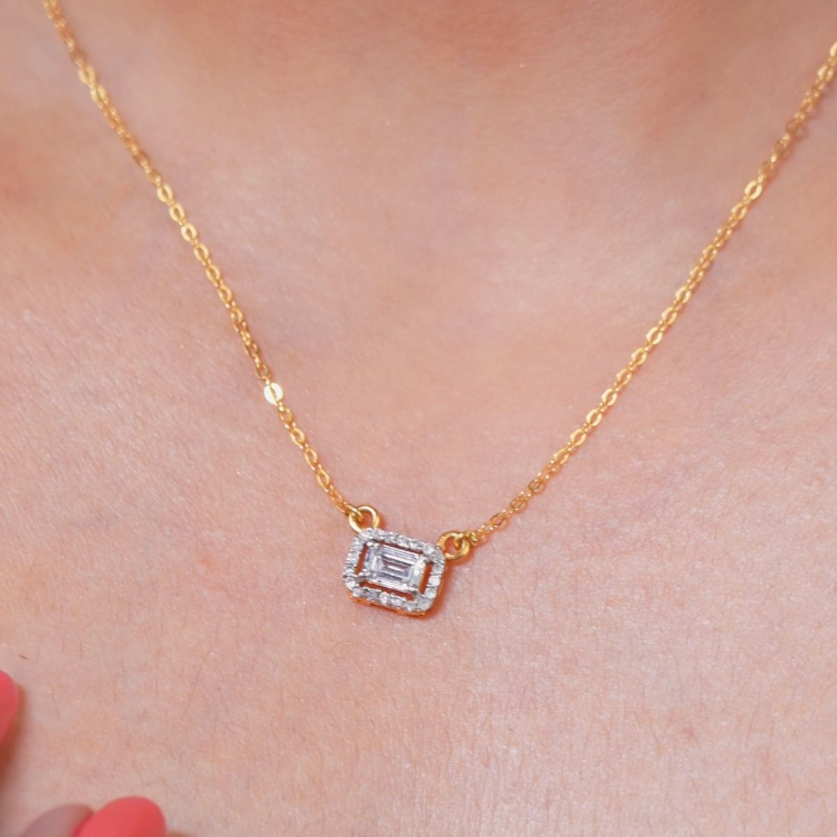 Avarta Gold 50 Cents Emerald Cut Halo Diamond Pendant With Chain