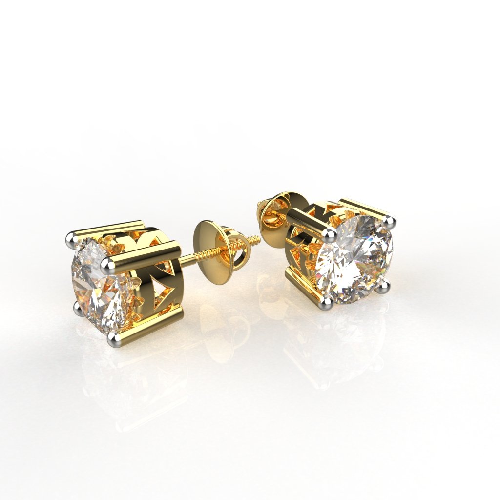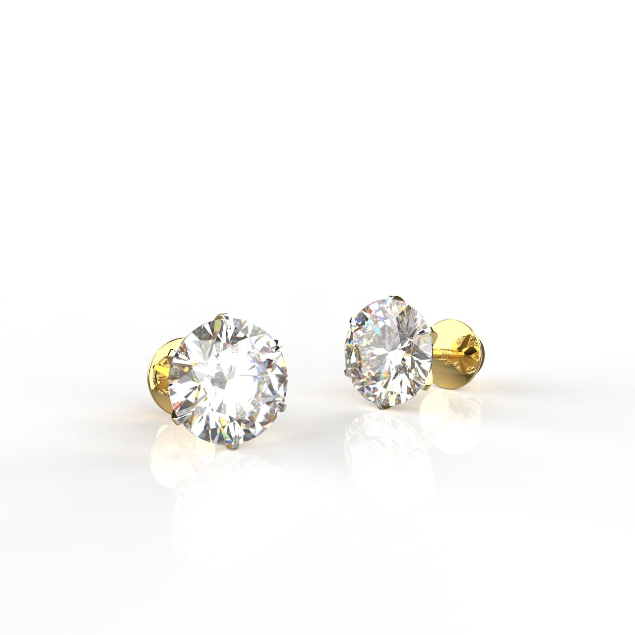 Avarta Jewellery Sterling Silver 2 Carat Each Solitaire Stud Earrings in Traditional Design with Gold Polish