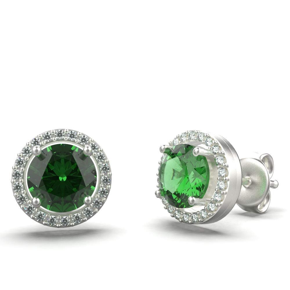 Avarta Sterling Silver Halo Emerald Green Solitaire Stud Earrings For Girls & Women