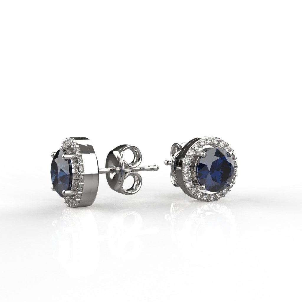 Avarta Sterling Silver Halo Blue Sapphire Solitaire Stud Earrings For Girls & Women