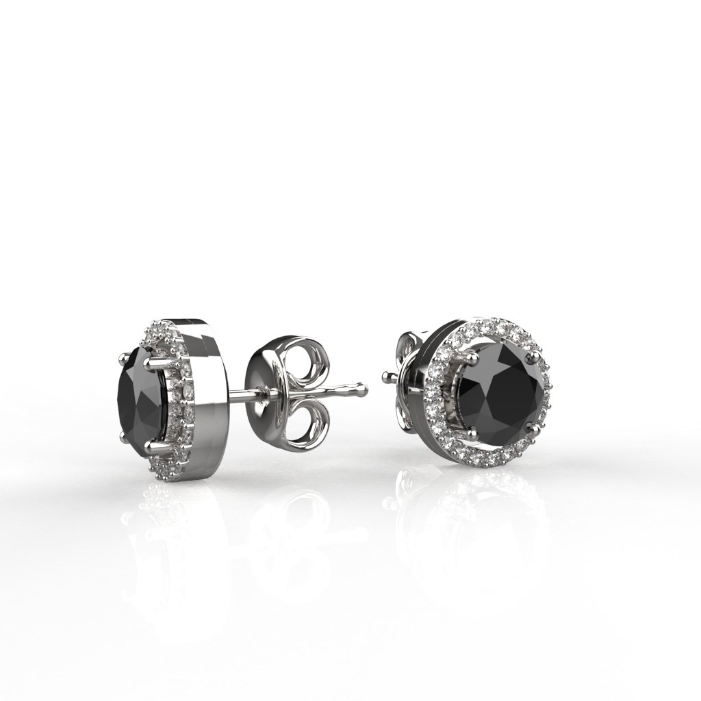 Avarta Sterling Silver Halo Black Solitaire Stud Earrings For Girls & Women