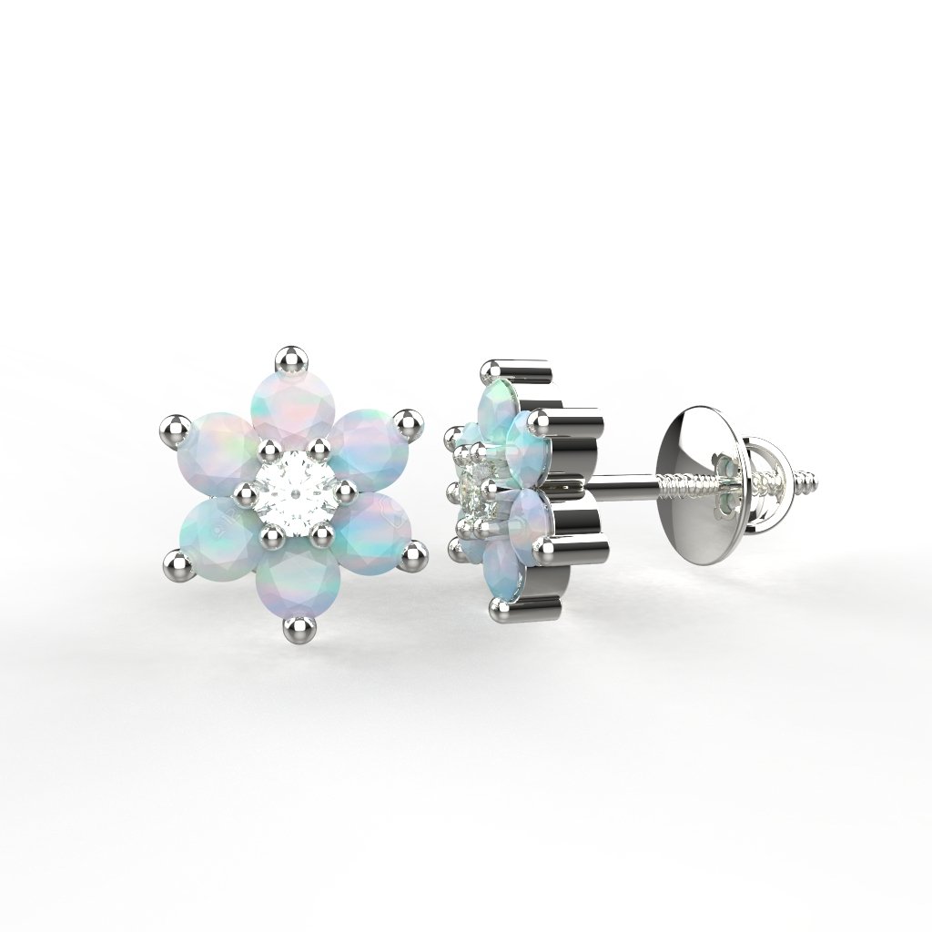 Avarta Sterling Silver Opal Stud Earring With American Diamonds