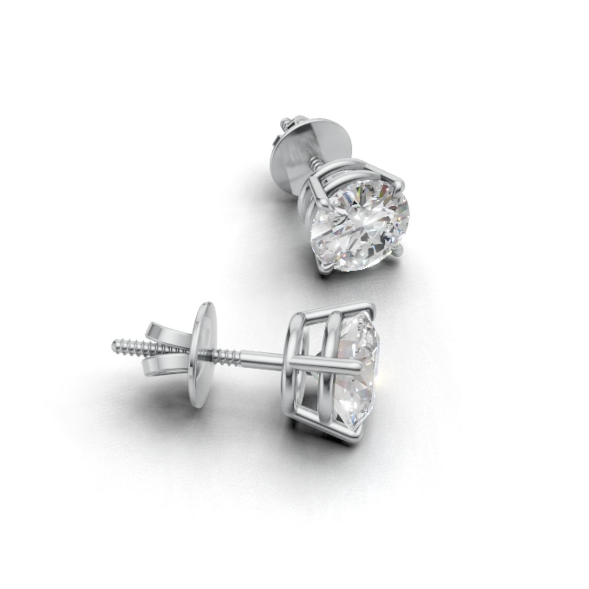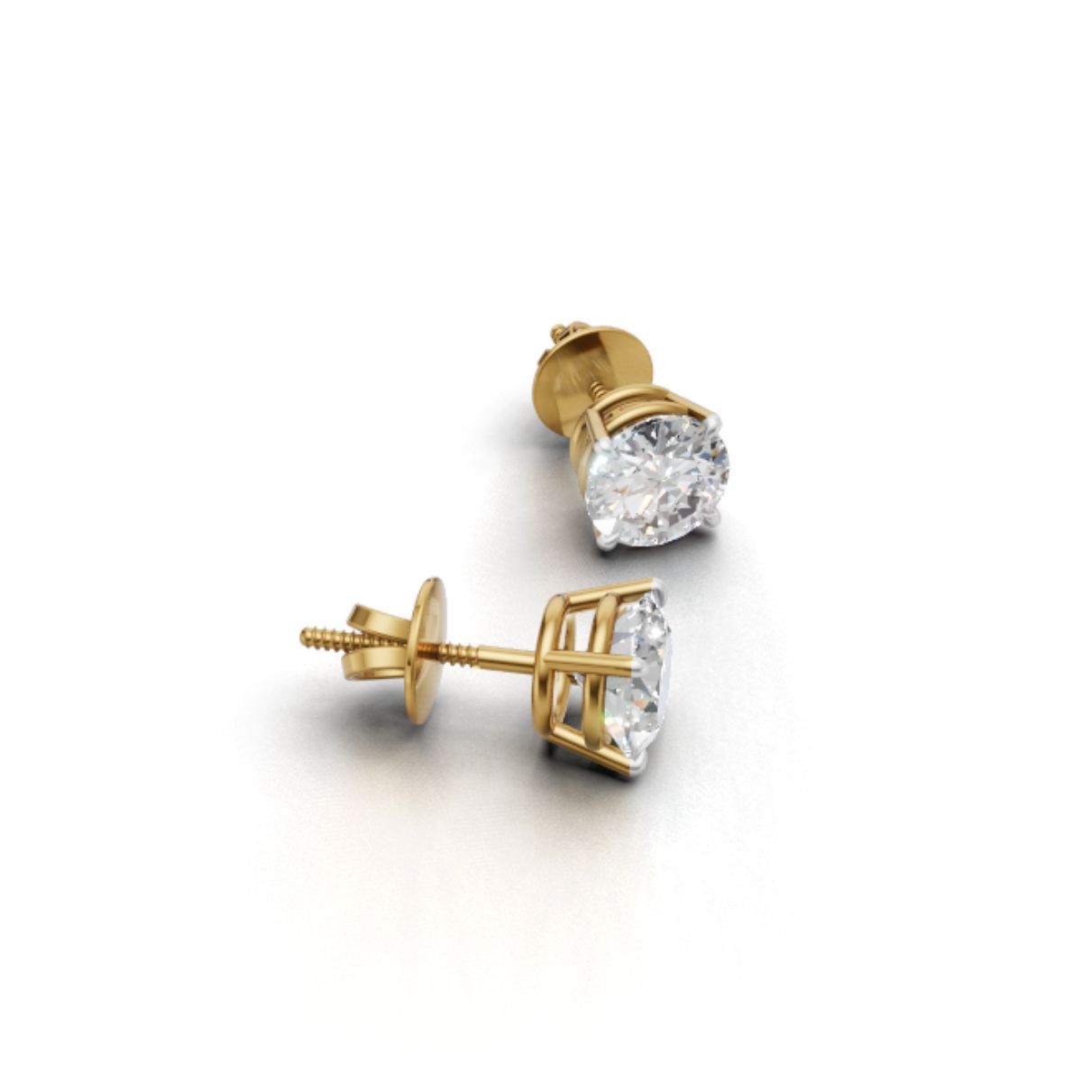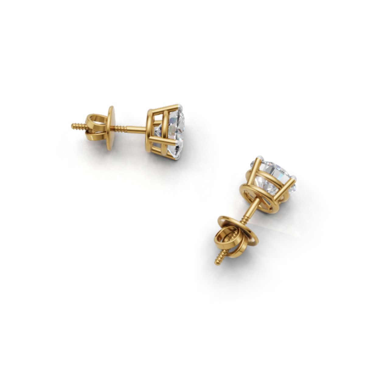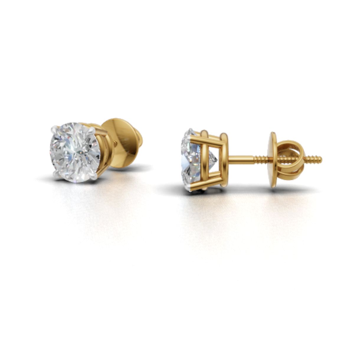 Avarta 18k Gold Lab Grown 1 Carat Each Solitaire Stud Earrings