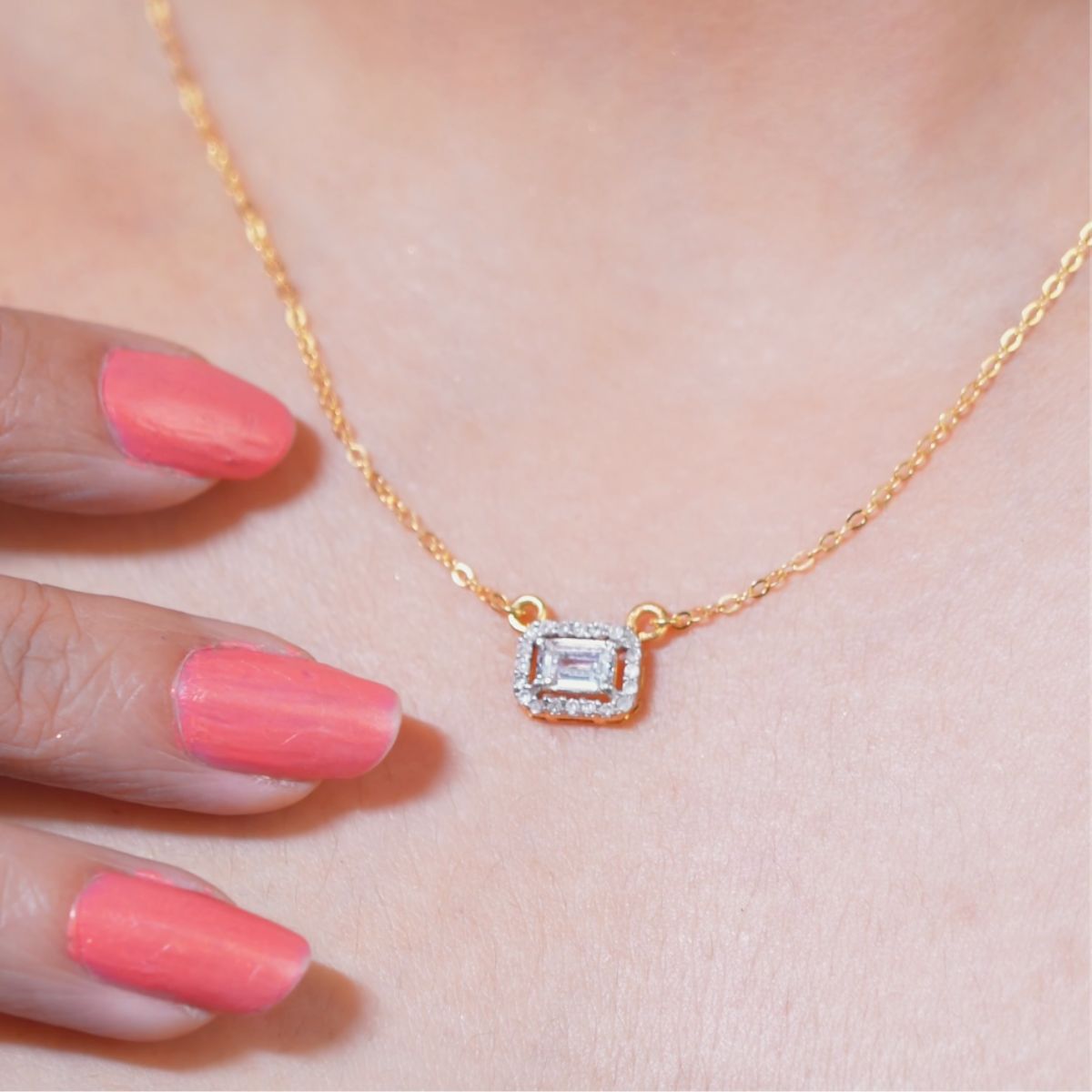 Avarta Gold 50 Cents Emerald Cut Halo Diamond Pendant With Chain