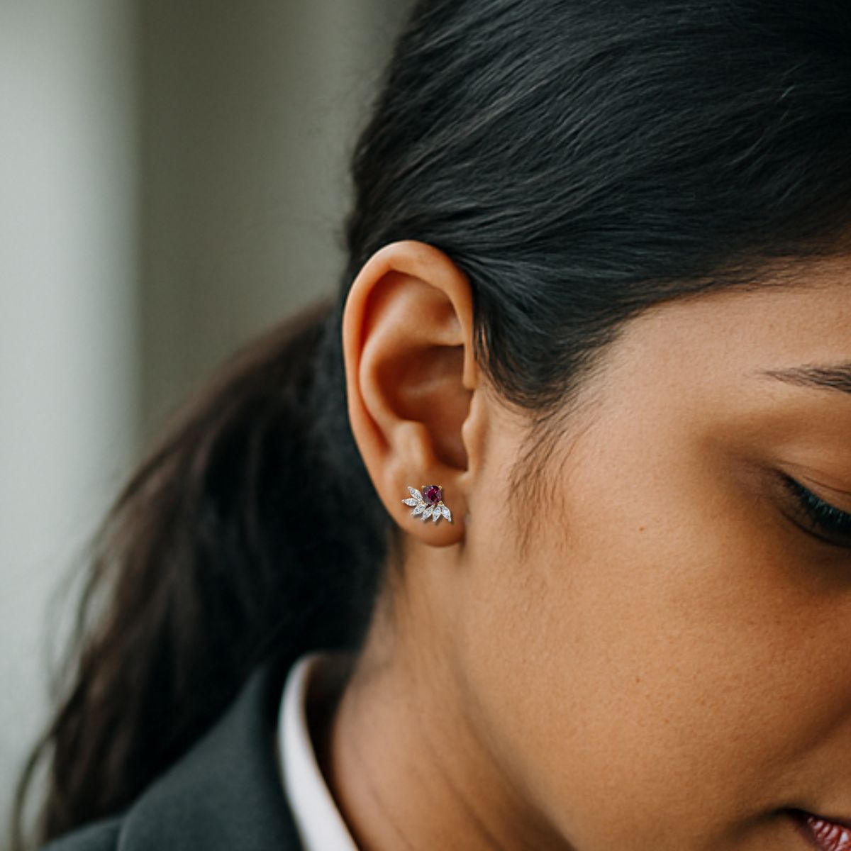 Avarta Gold Luxe Cushion Ruby Lab Diamond Earrings