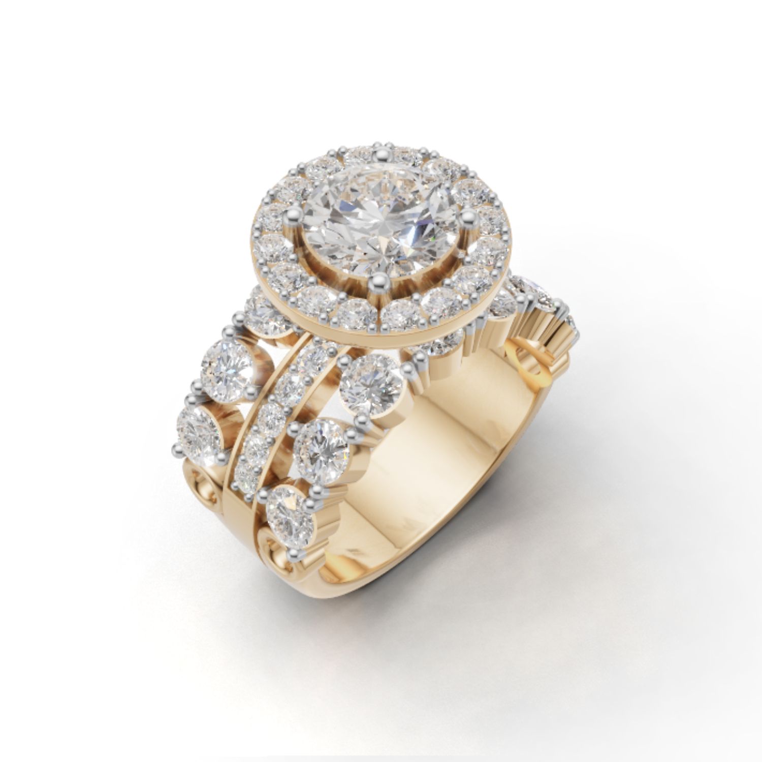 Avarta Gold 1.50 Ct Solitaire Lab Diamond Wedding Ring with 2.10 Ct Accent Diamonds – Elegant Bridal Ring
