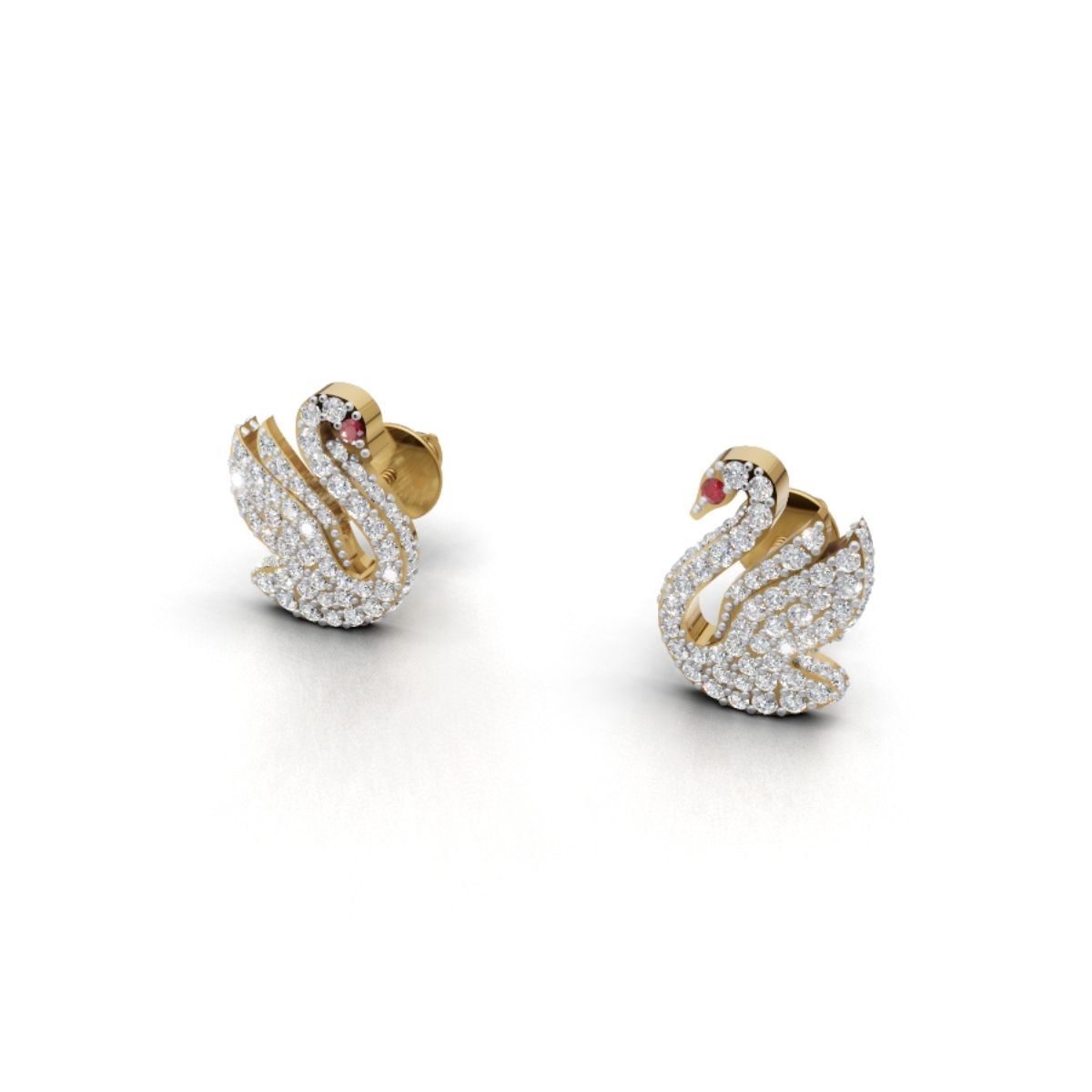 Avarta Jewellery Gold Swan Diamond Stud Earrings with Lab Diamonds