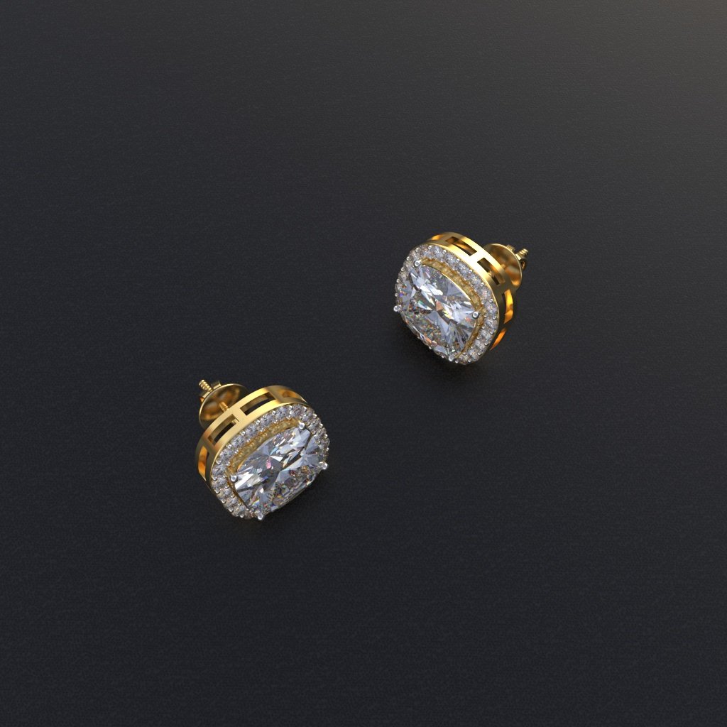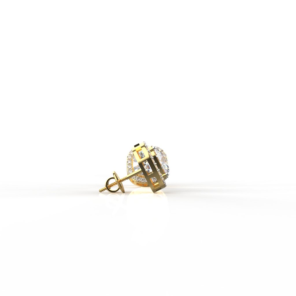 Avarta Jewellery 18k Gold 2.50 Carat each Halo Moissanite Solitaire Studs