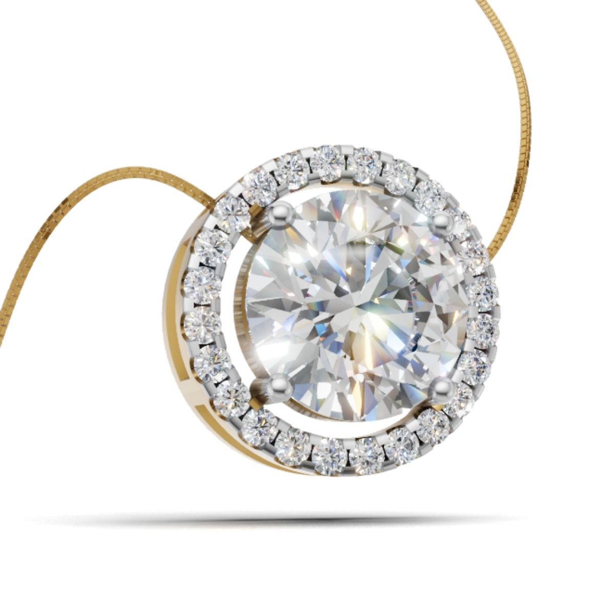Avarta Jewellery 18k Gold 2 Carat Moissanite Solitaire Halo Pendant