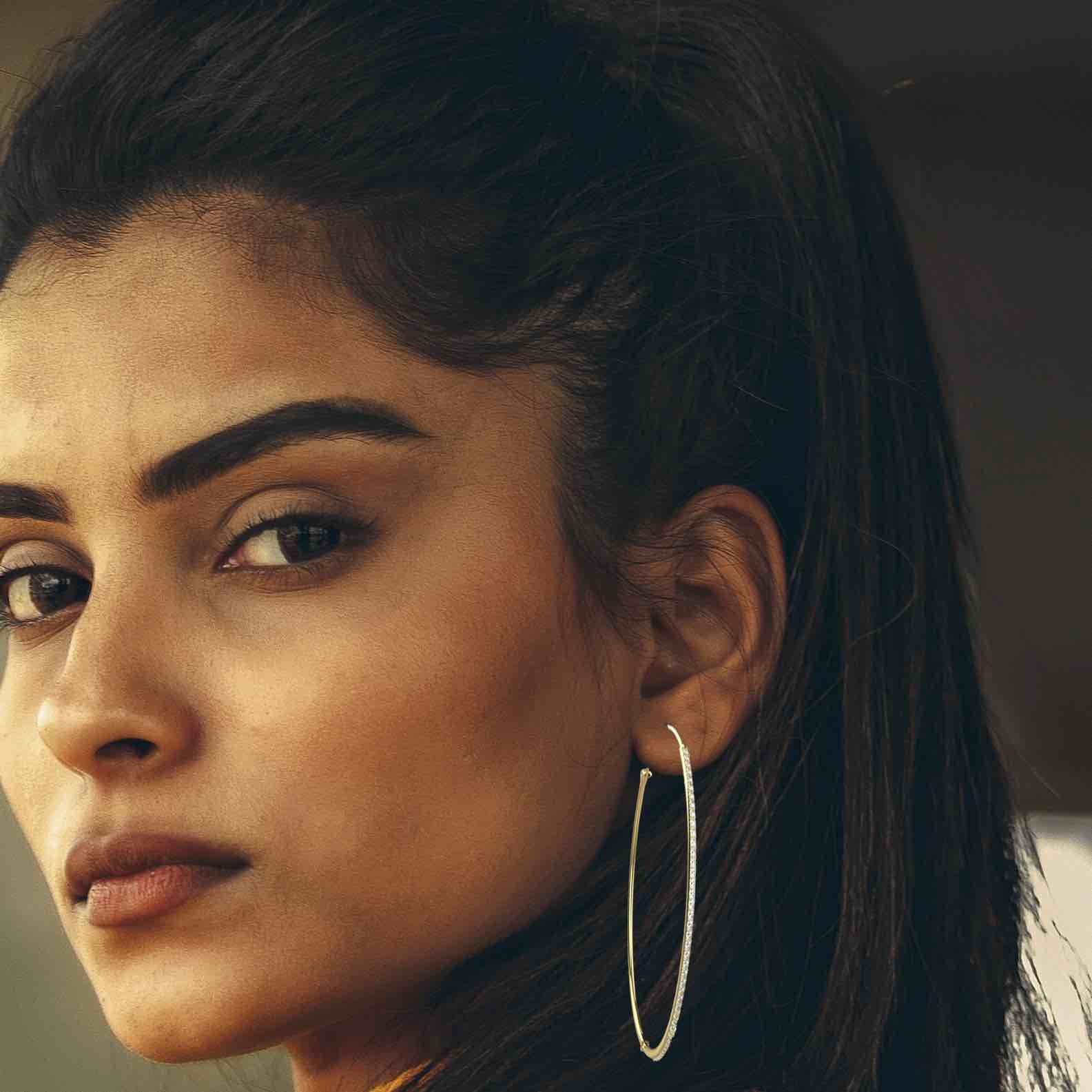 Avarta Jewellery 18k Gold & Certified Diamond Long Hoop Earrings For Girls & Women