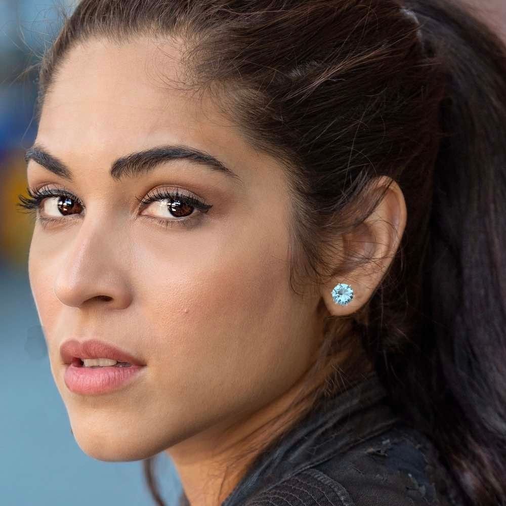 Avarta Jewellery 92.5 Sterling Silver American Diamonds 2.50 Carat Each Aqua Blue Solitaire Studs Earrings for Girls & Women