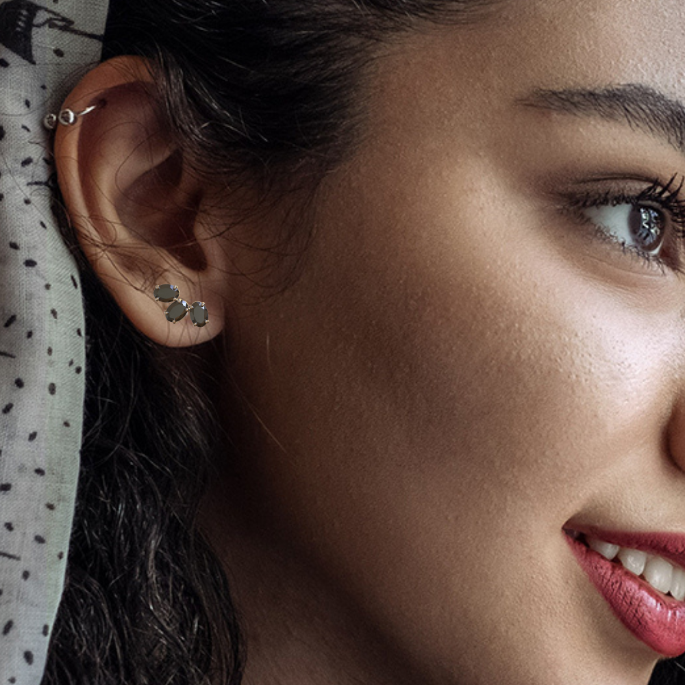• STONE – Super Shiny 6 Pcs of 0.8 Carat Each Aggregating 4.80 Carat & 7 MM x 5 mm AAA Grade Black American Diamond is Used. Aggregating Pair Weight of 4 Carat.