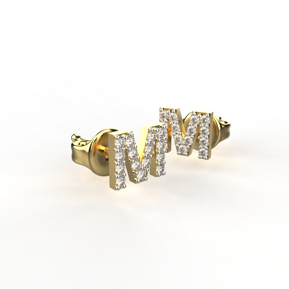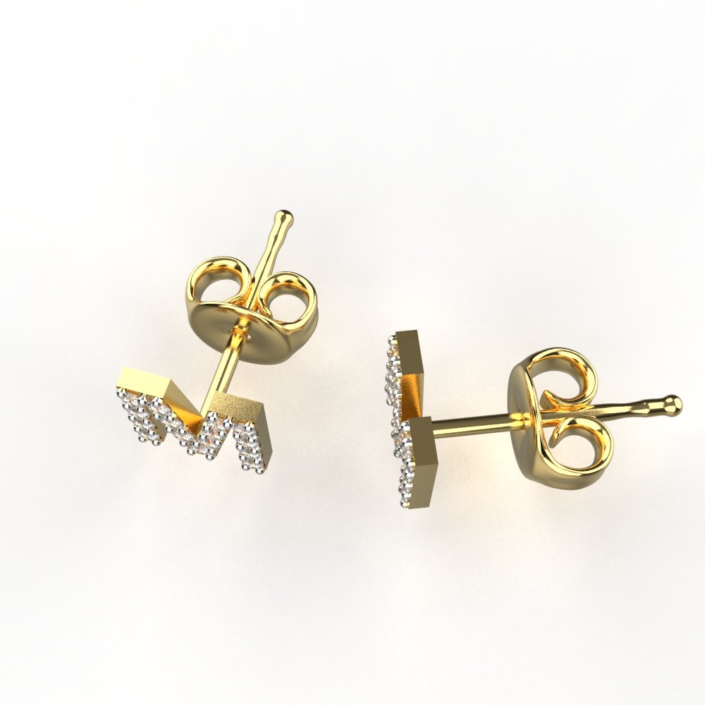 Avarta Jewellery Gold M Letter Diamond Studs Earrings