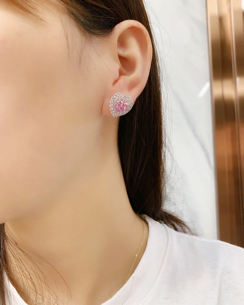 Avarta Jewellery Sterling Silver 2 Carat Each Pink Heart Earrings For Girls & Women