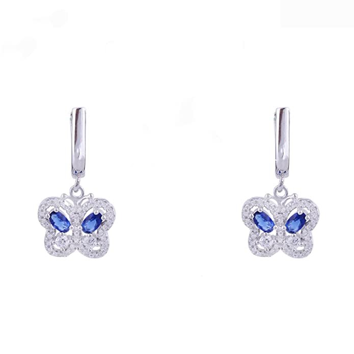 Avarta Jewellery Sterling Silver Blue Sapphire Butterfly Pendant Set