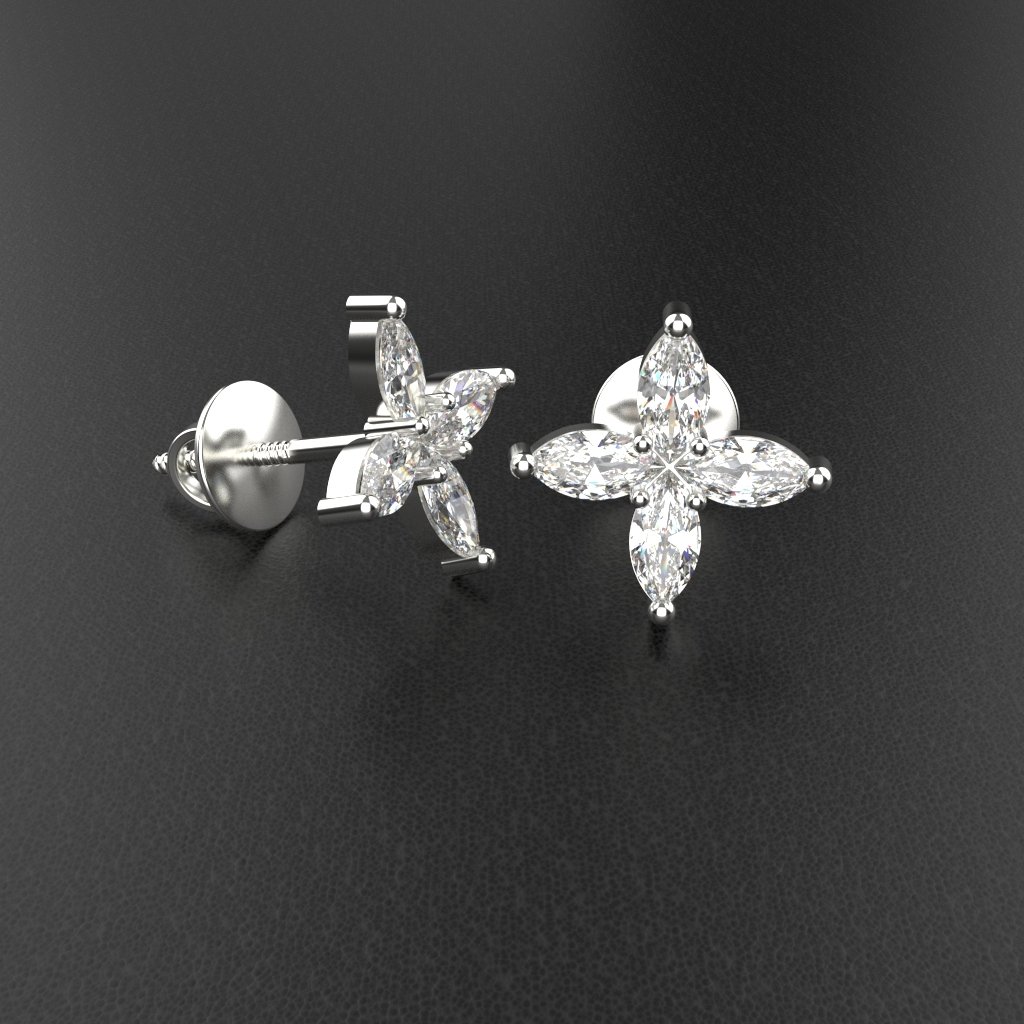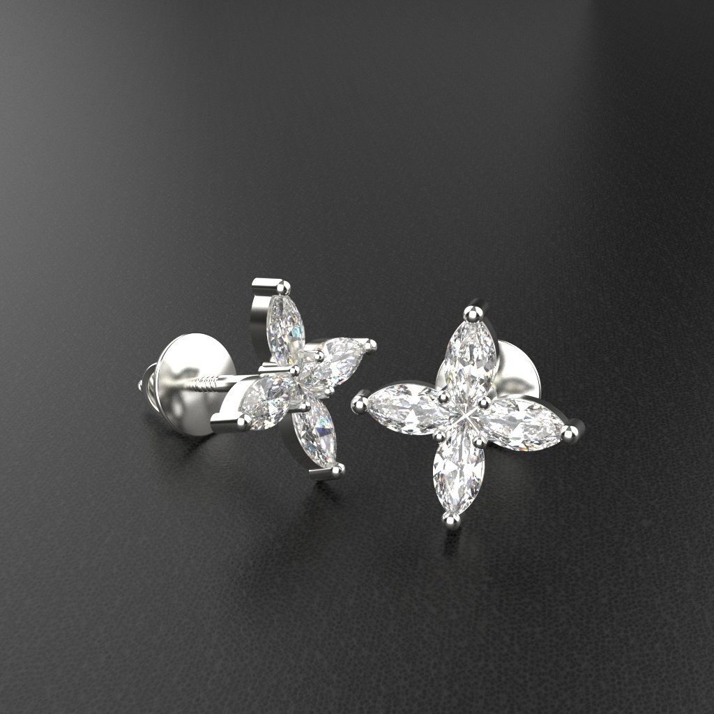 Avarta Jewellery Sterling Silver Marquise Flower Stud Earrings With White Gold Polish for Girls & Women