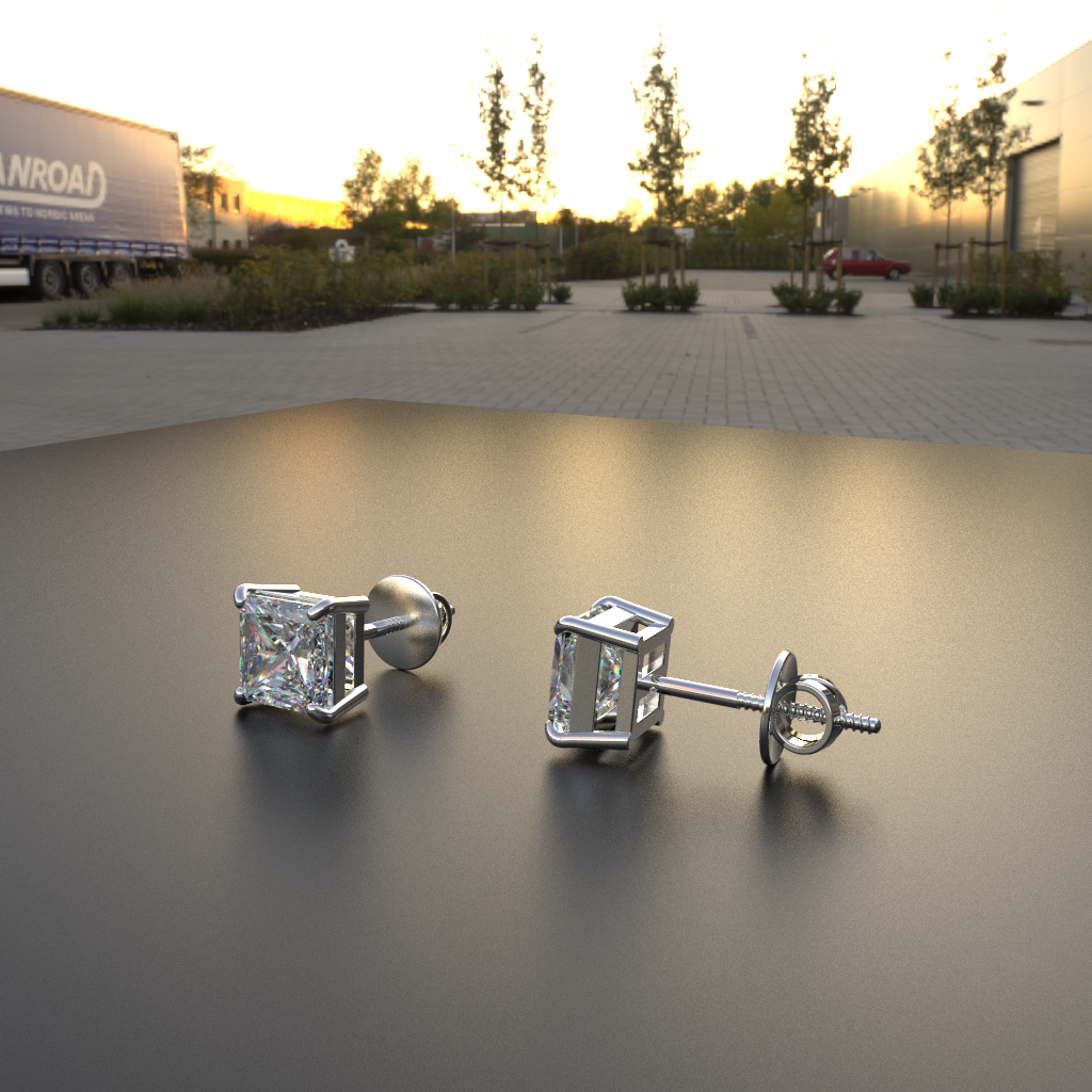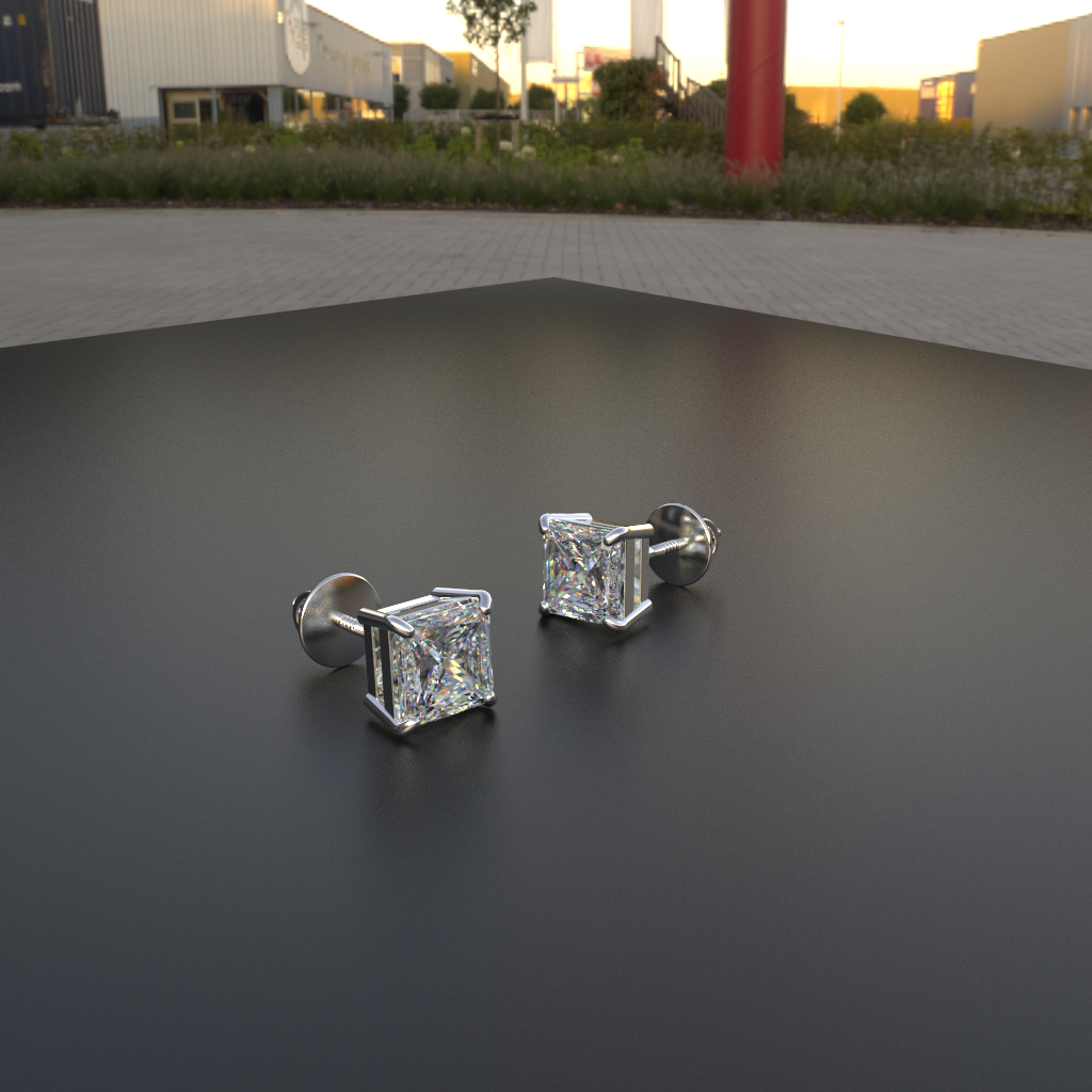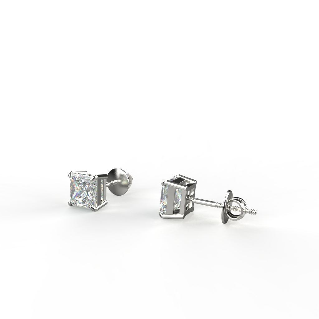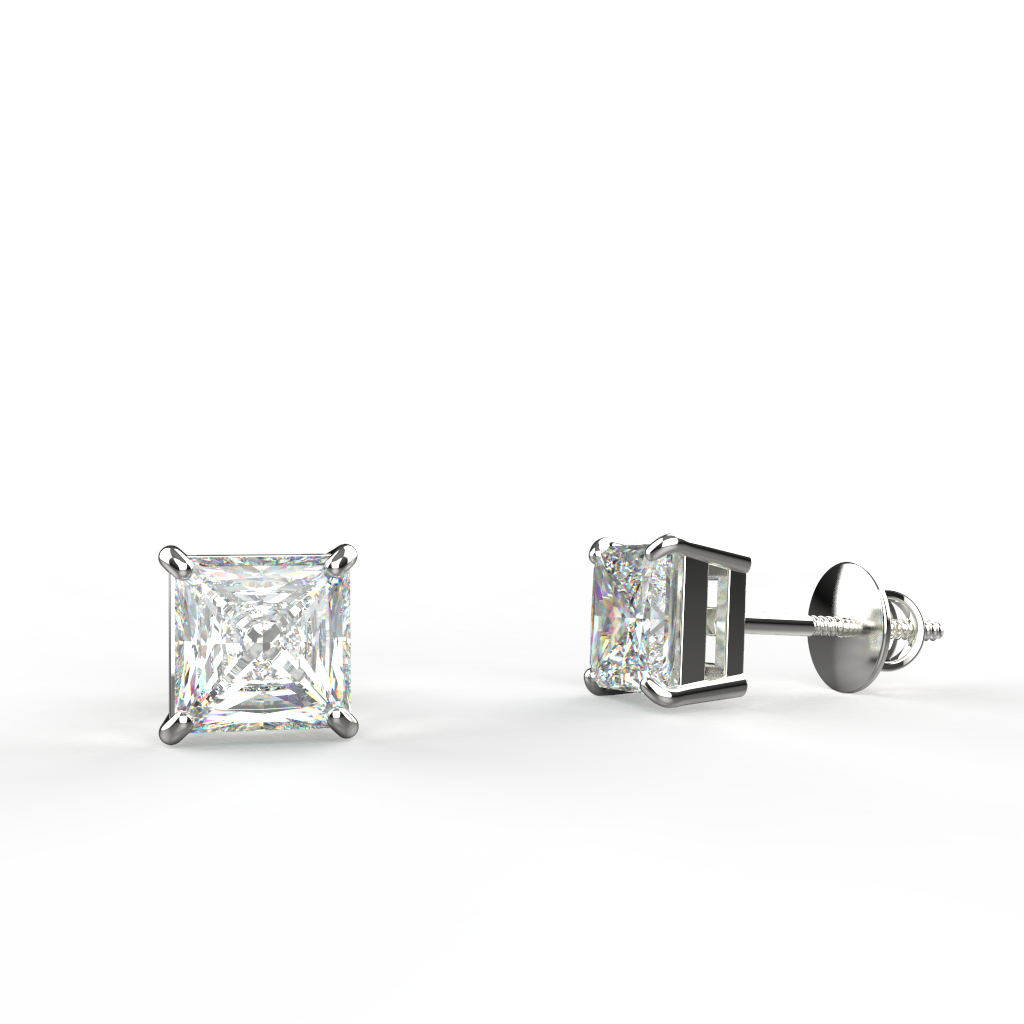 Avarta Jewellery Sterling Silver Princess Cut 1 Carat Each Solitaire Stud Earrings