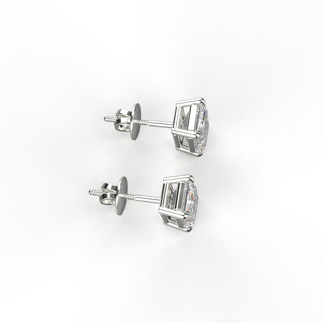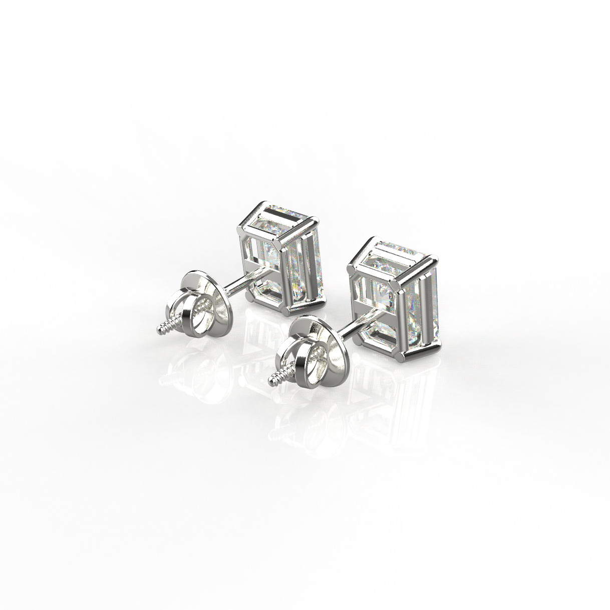 Avarta Sterling Silver 1 Carat Each Emerald Cut Solitaire Stud Earrings With White Gold Polish