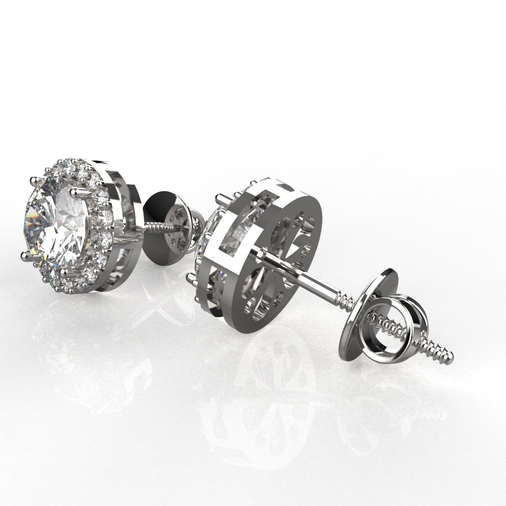 • STONE – Super Shiny 1 Carat or 6.50 MM Each Brilliant Cut 5A Grade GlitzC American Diamond is These Halo Solitaire Stud Earrings. Aggregating Pair Weight of 2.00 Carat.