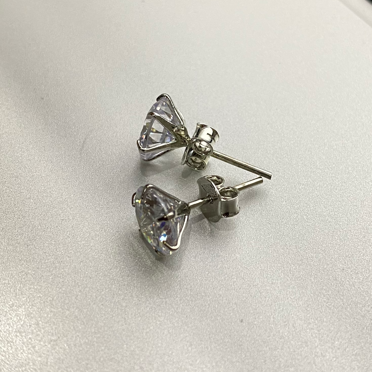 Avarta Sterling Silver 6 Prong 2 Carat Each American Diamond Studs For Girls & Women