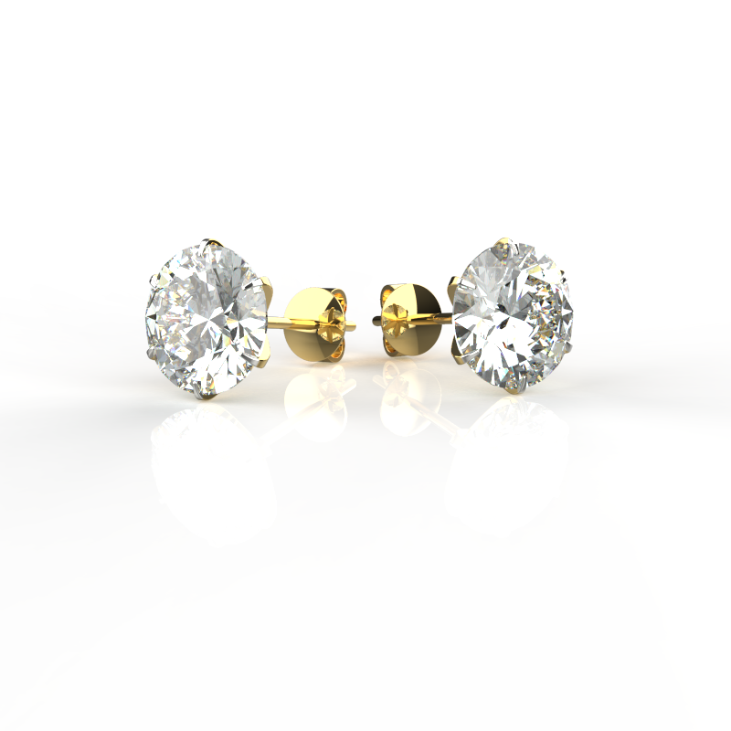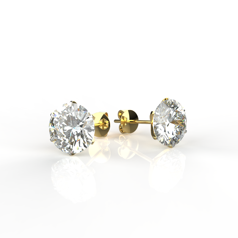 Avarta Sterling Silver 6 Prong 2 Carat Each American Diamond Studs With Gold Polish For Girls & Women Avarta Sterling Silver 6 Prong 2 Carat Each American Diamond Studs With Gold Polish For Girls & Women