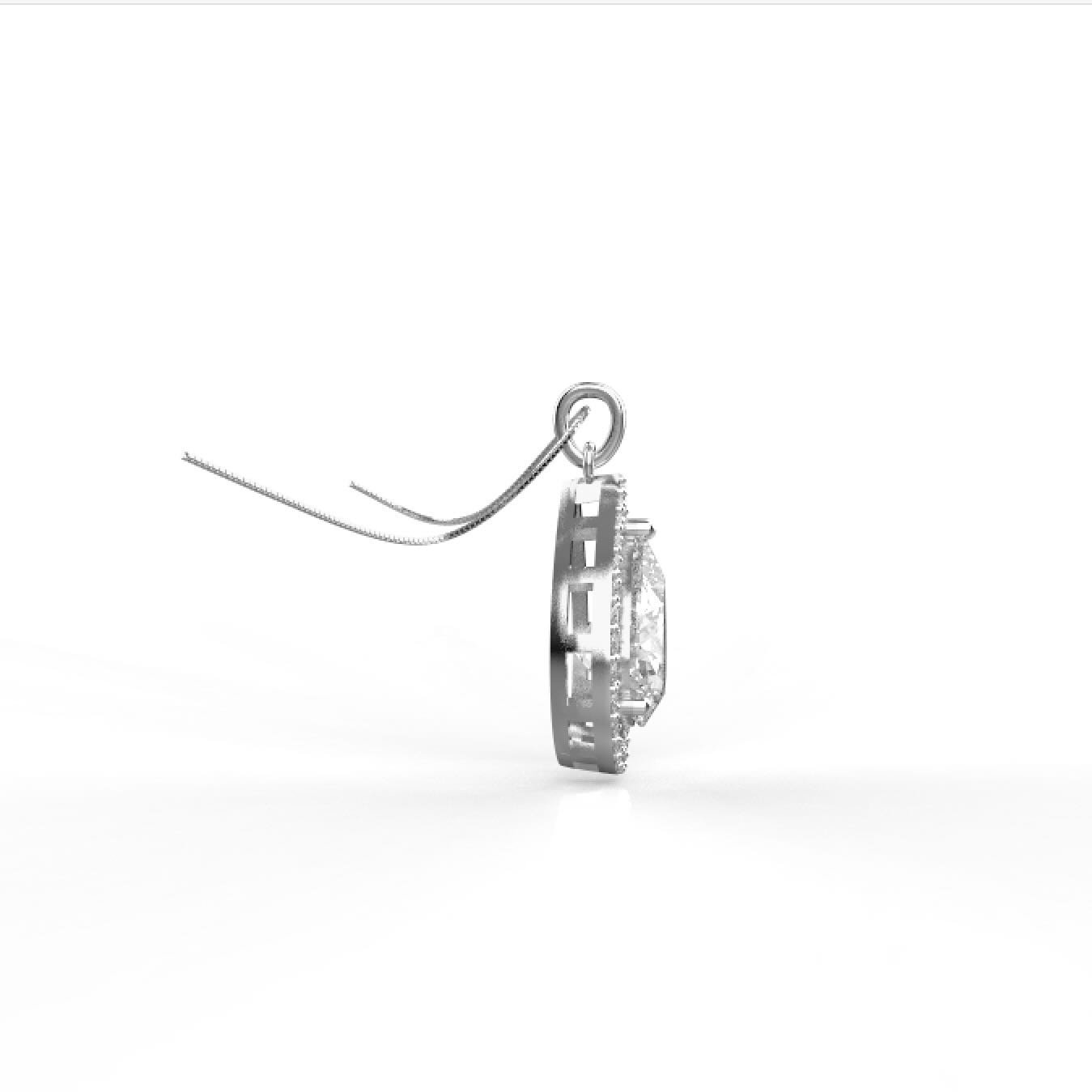 Avarta Sterling Silver Pear Solitaire Halo Pendant With Chain in White Gold Polish