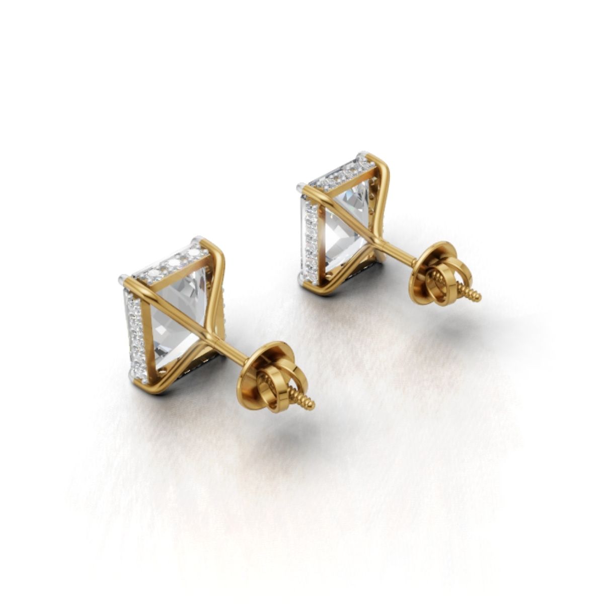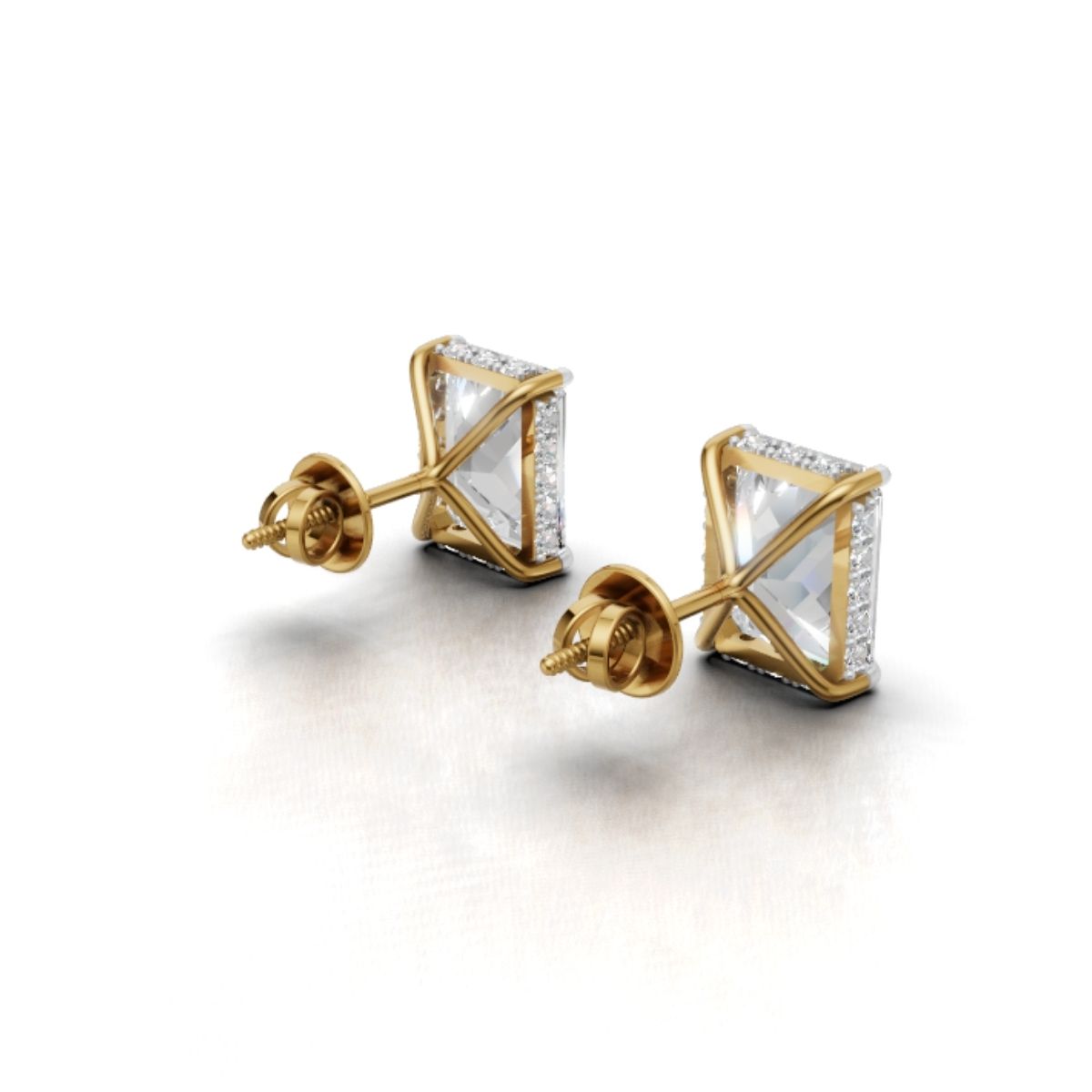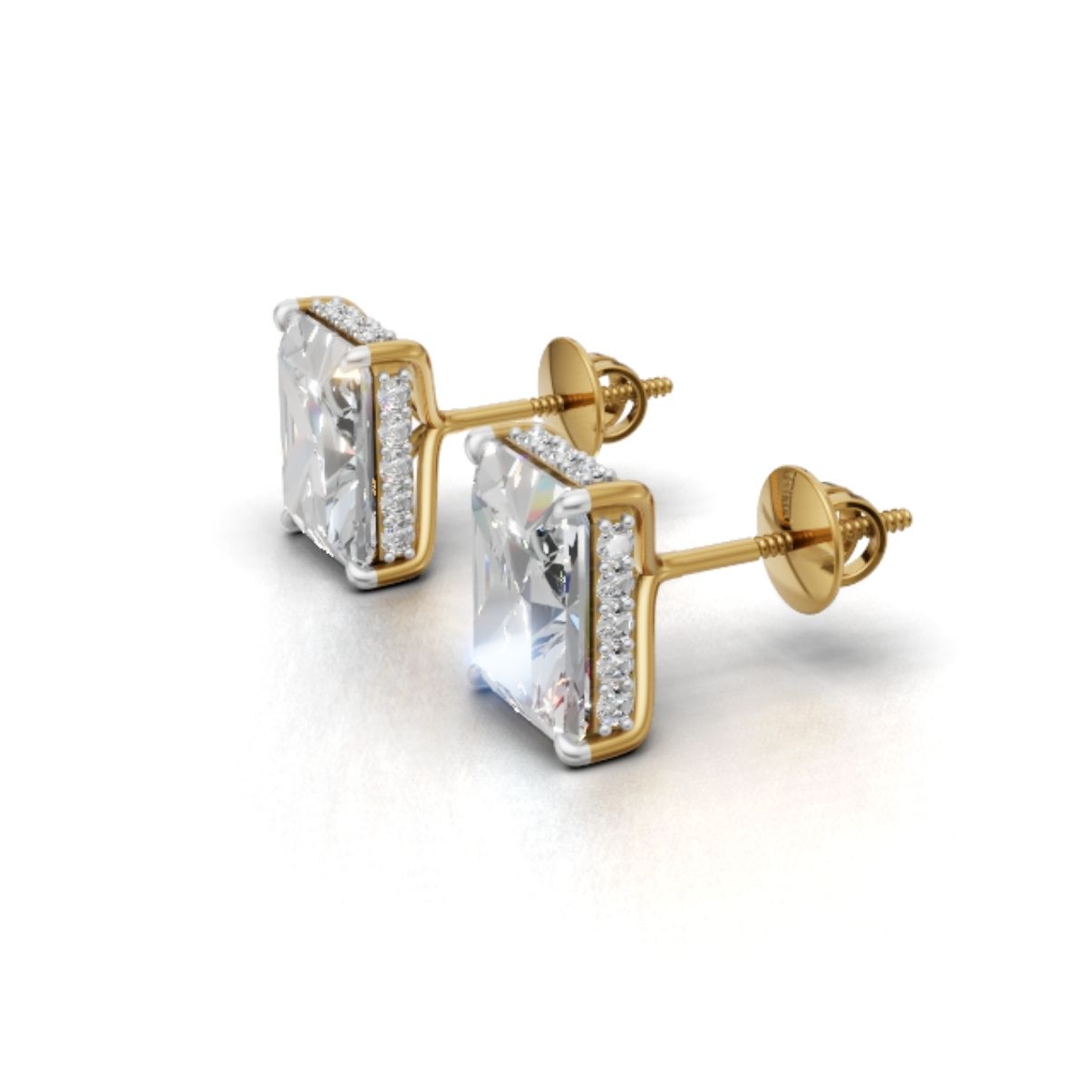 Yellow Gold Emerald Cut Moissanite Studs – 3 Carat Halo Solitaire by Avarta Jeweller
